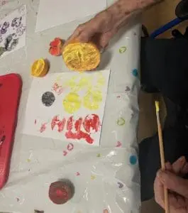 Belinda, Lifestyle Lead at Maidstone Care Centre, said: “Today has been a lovely, art-filled day. Residents really enjoyed decoupaging and decorating their own jars with petals and other natural decorations. They also made leafy tealight holders that are currently drying, and everyone loved the fruit printing – it was colourful, messy, and lots of fun! Residents really embraced being arty today and got fully involved.”
