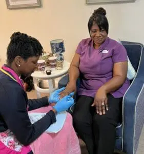 Sian, the Lifestyle Lead at Manton Heights, shared that the carers appreciated the day, saying it was just what they needed. “The Carers said how grateful they were and how appreciated they felt to have something given back to them. Some also said how they felt the treatments received were just what they needed to get them through their long shift! The Lifestyle Team providing the treatments were nervous before the day started but by the end of it wanted to plan the next one as they felt good for giving the Carers back something for all the hard work they put in every day”.