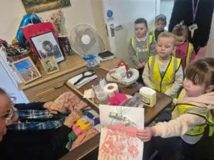To kick off the festivities, children from Little Owls Nursery paid a special visit on Friday, presenting Mary with a handmade card to wish her a happy birthday. On the big day itself, Mary’s family gathered in Orchard House’s cinema room, enjoying delicious homemade refreshments prepared by the hospitality team.