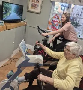 For General Manager Sarah Watson, the event was about more than raising money—it was also a celebration of physical and emotional well-being: “This was a wonderful way to engage everyone in a meaningful activity. Watching staff and residents share stories while cycling and seeing the scenic video feed kept us all motivated. It’s not just about fundraising but also about fostering connections and promoting health.”