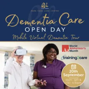 On September 20th, Park View Care Centre will hold a Dementia Open Day in partnership with Training 2 Care. A key feature of the day will be the Virtual Tour Bus, an immersive, 360-degree experience designed to give participants a glimpse into the world of someone living with dementia. The Virtual Tour offers a unique opportunity for attendees to better understand the challenges faced by those living with dementia.