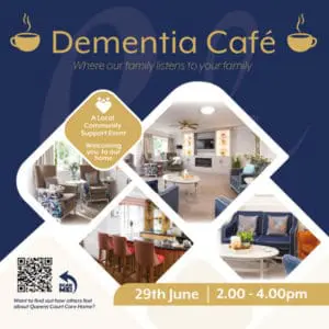 Queens Court Care Home welcomes you to our Dementia Café where our Dementia Ambassador is on hand to offer support and advice.