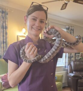 Belinda, Lifestyle Lead at Maidstone Care Centre, said: “These visits from Naomi and the Animalia animals are always so well received. The residents and the team absolutely love the hands-on experience, and it’s wonderful to see how engaged everyone becomes. It sparks conversation, brings back memories, and creates such a positive atmosphere throughout the home.”