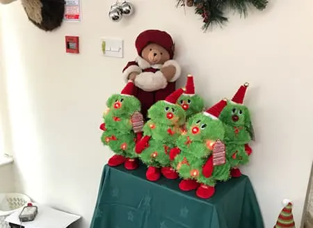 As such, the staff at The Withens Nursing Home decided this was the perfect excuse to celebrate Christmas not once, but twice this year. While enjoying a rare Indian summer in England, the Christmas tree and decorations were up, and staff and residents wore suitably silly Christmas jumpers. In the build up to the big day, both residents and staff alike thought they were being sneaky in secretly turning on the miniature singing and dancing Christmas trees. Unfortunately, their constant giggling gave the game away – 007 need not fear that anyone from our nursing home will take away his job!